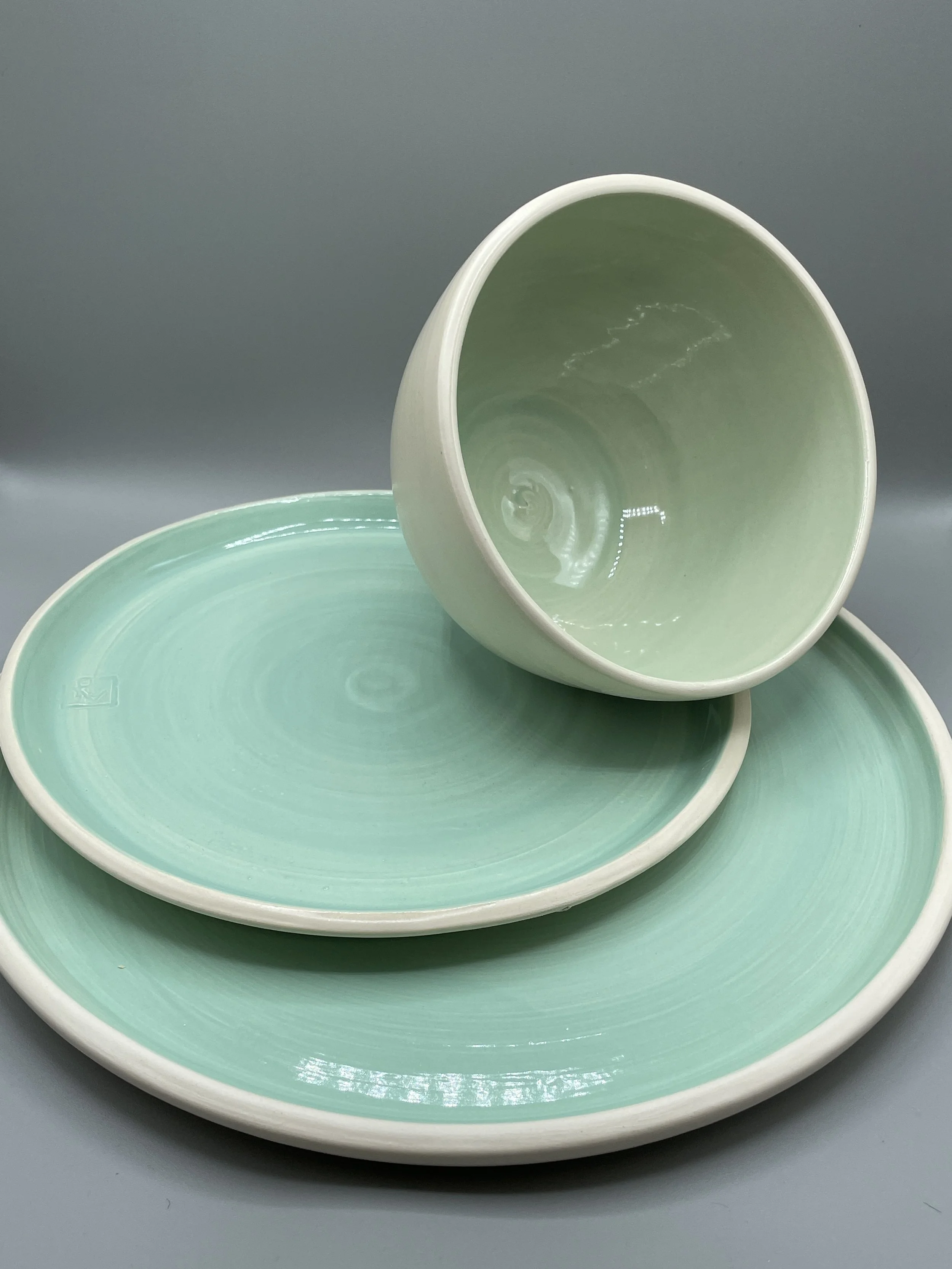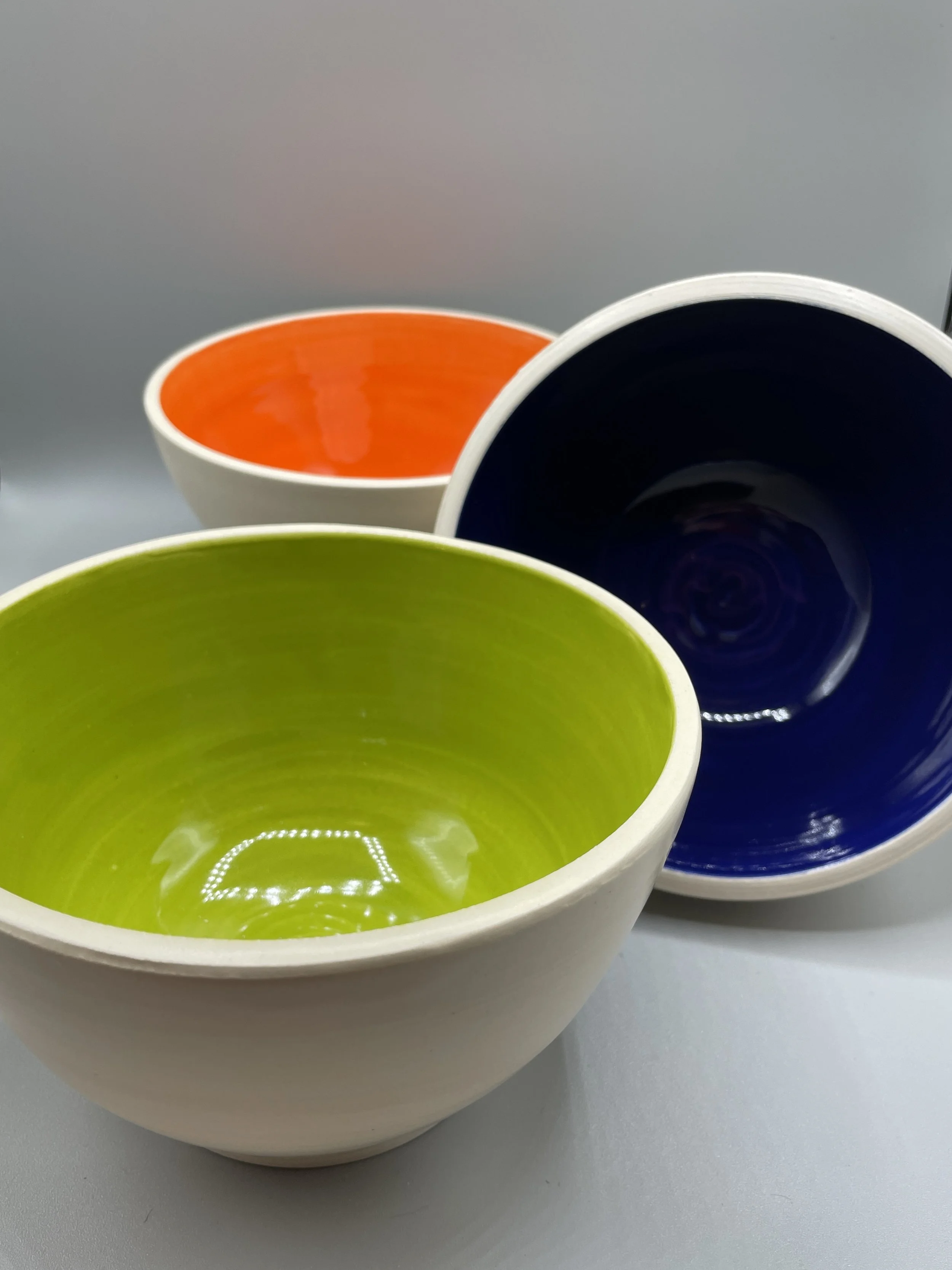 I have always had a creative spirit. Taking a ball of clay and creating something functional seems magical to me. Bright primary colors have always awakened a joy in me. I also love the calm colors of the Salish Sea and our surrounding Puget Sound.